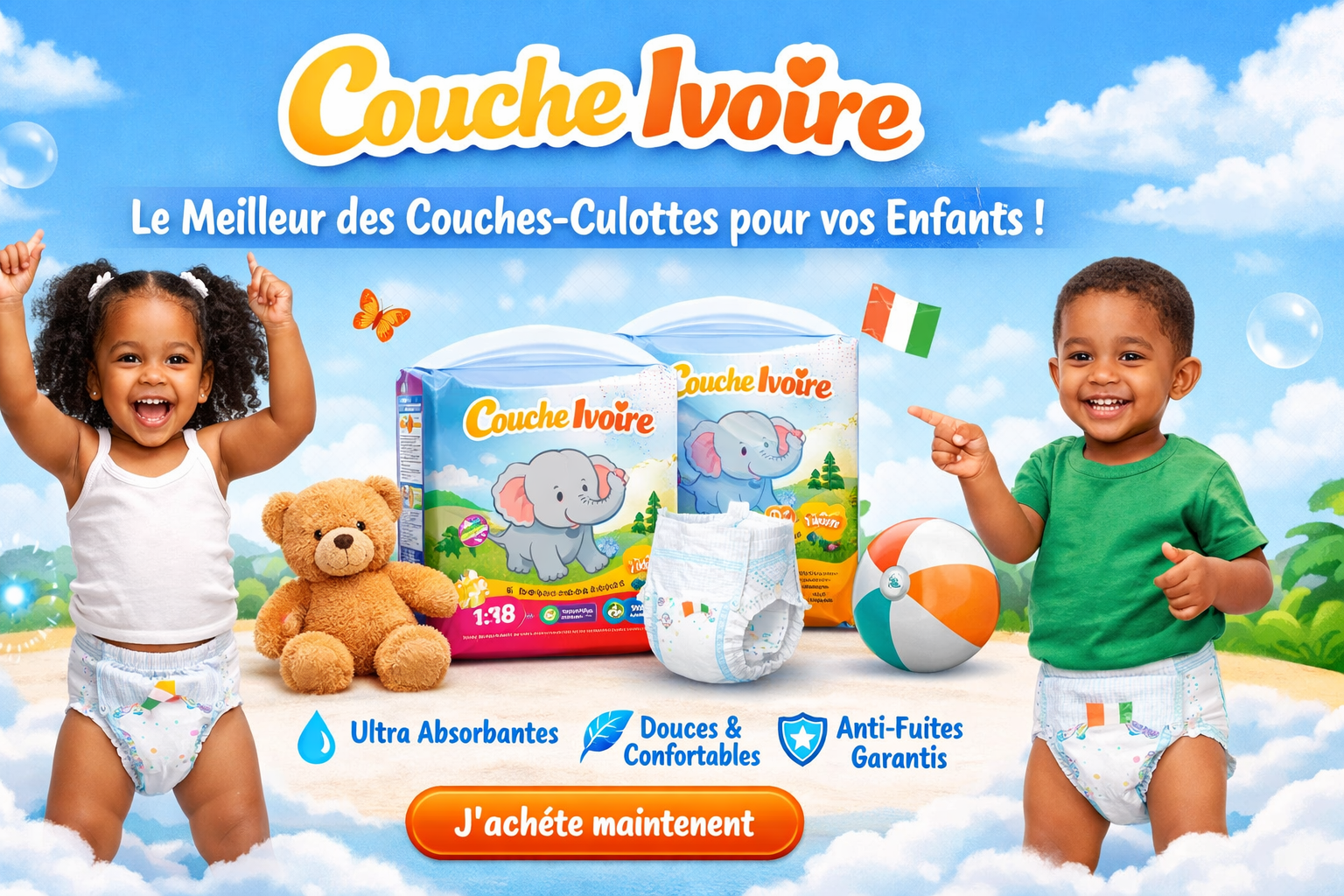 Notre business est né d’un constat simple : les familles veulent des couches fiables, confortables et sûres, sans avoir à payer des prix excessifs. C’est pourquoi nous proposons des couches‑culottes au meilleur rapport qualité‑prix, adaptées aux réalités de la Côte d’Ivoire.